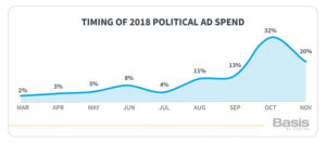 More than half of the advertising dollars spent in the 2018 elections were used during October and the November days leading up to the election.